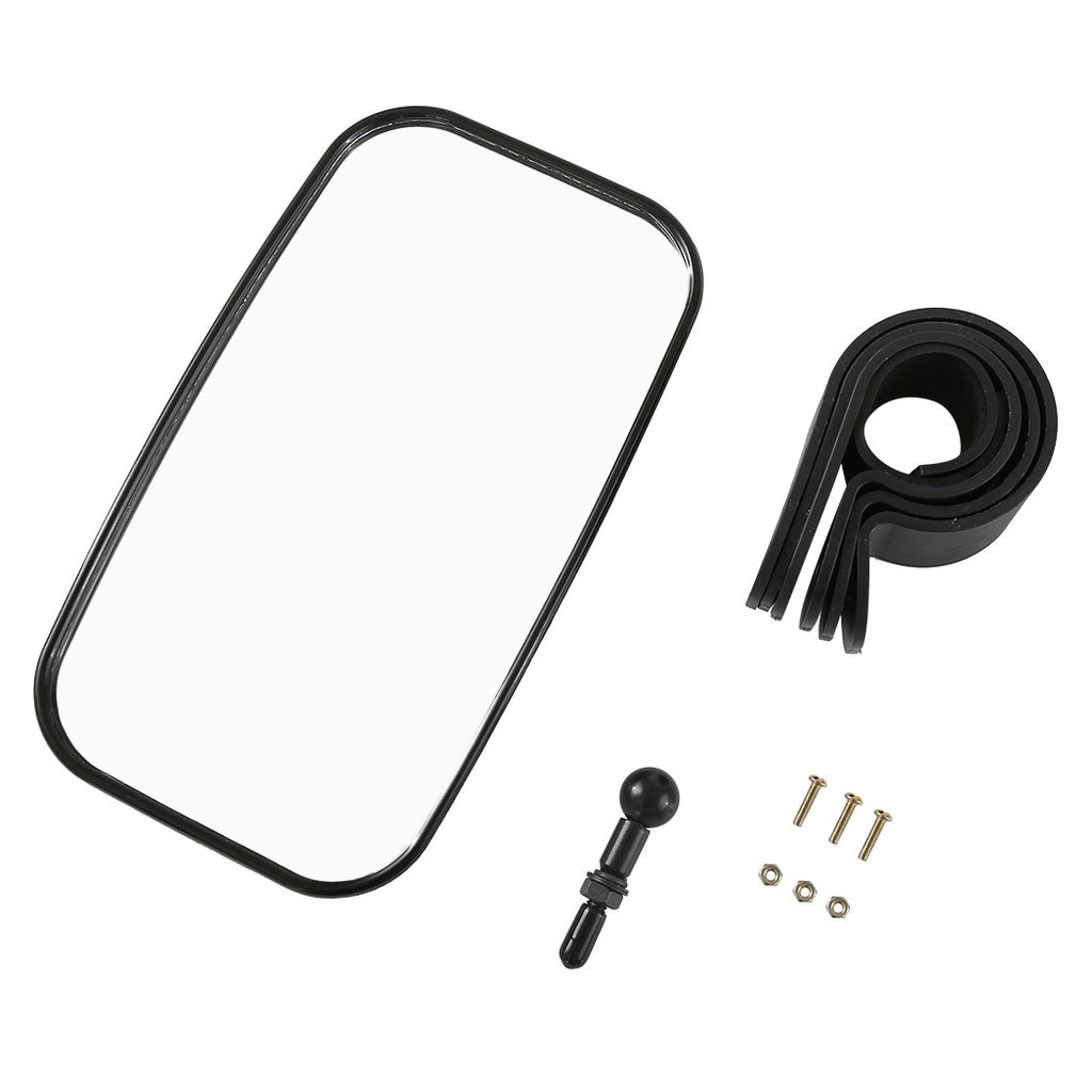 FITS NEARLY ALL OFFROAD UTVS: The universal fit of our convex rear view mirror allows you to outfit one in nearly any UTV. Mirror can be installed in minutes and clamp feature a protective plastic identity won't damage your pillars paint or chrome and can be Mirror dimensions are 4.5" x 8" inches. Hardware fits Most 1.375" - 2" inch tubing.