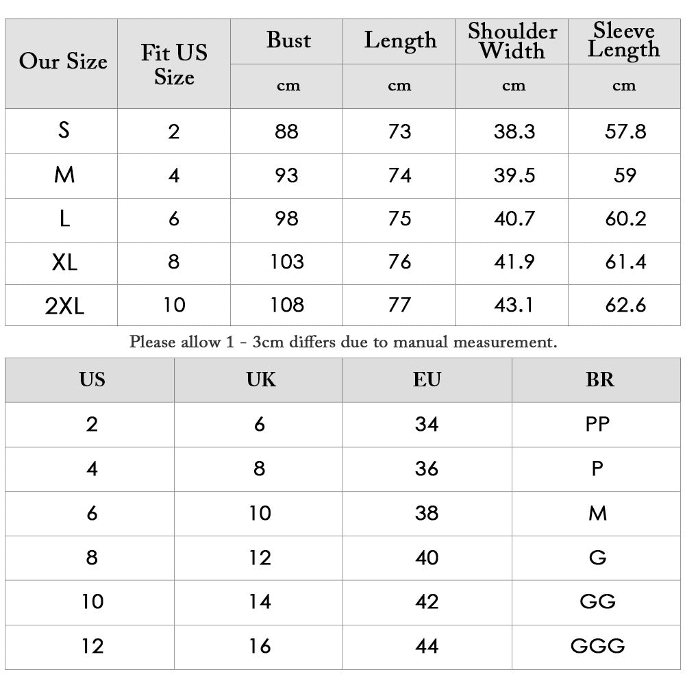 Our Size Bust Length Shoulder Width Sleeve Length