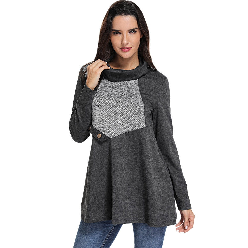 Cowl Neck Button Contrast T Shirt