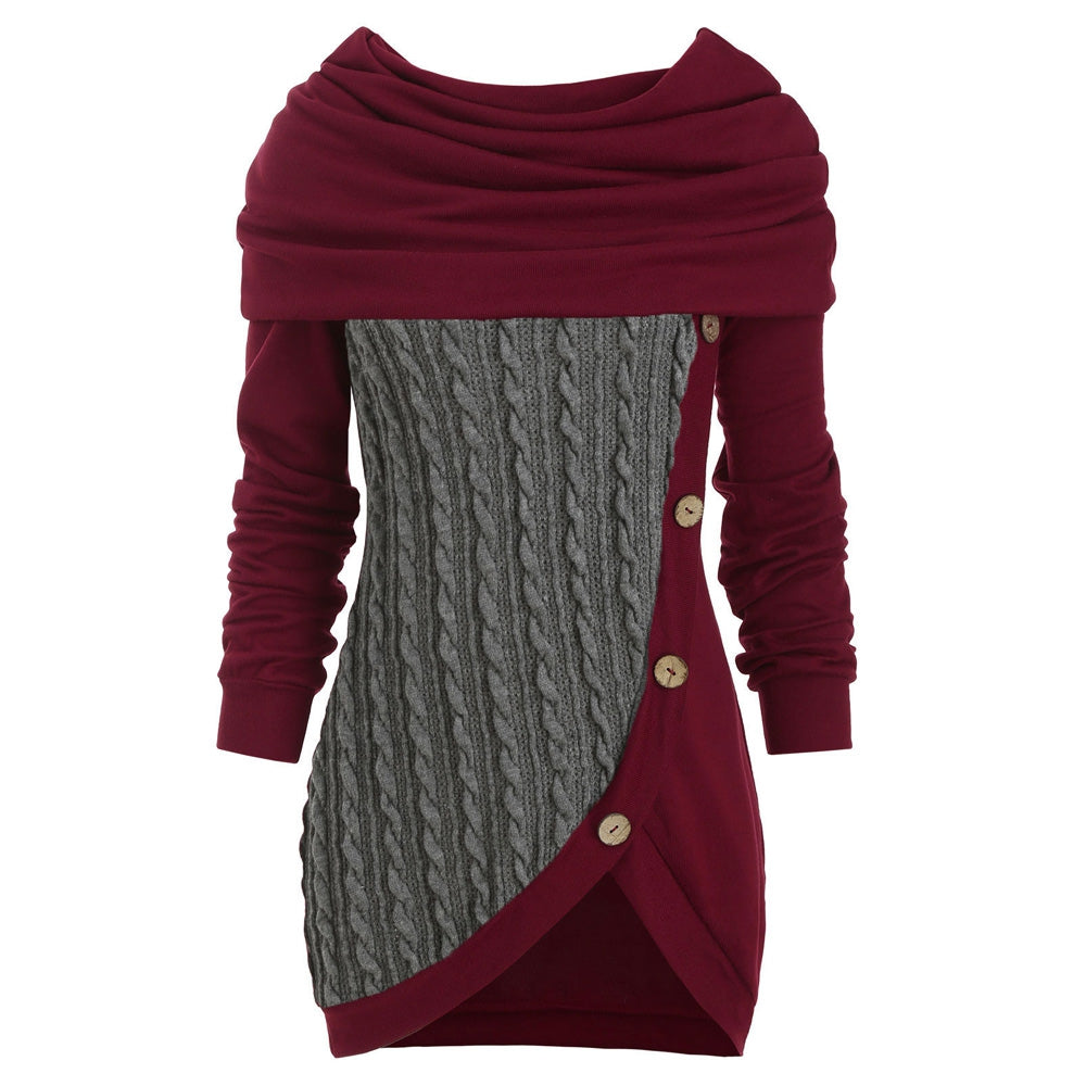 Cowl Neck Cable Knit Tunic Knitwear for Women