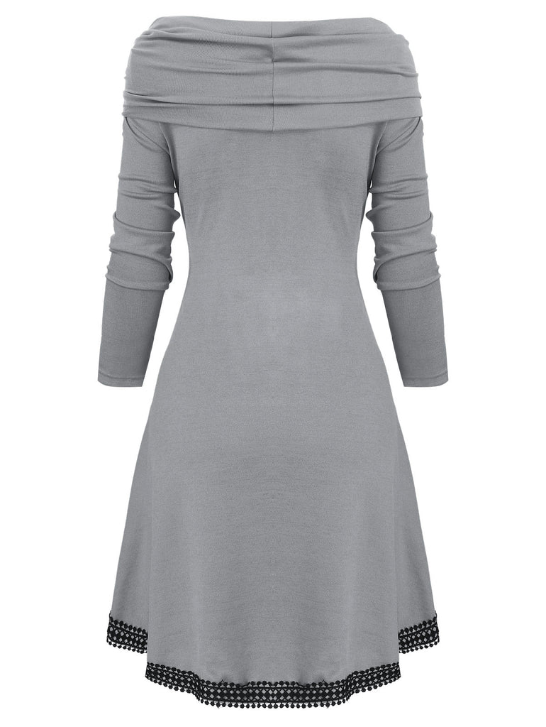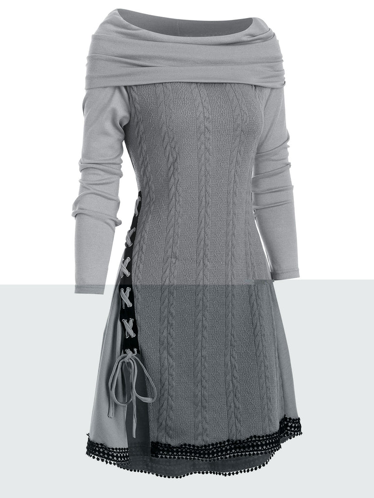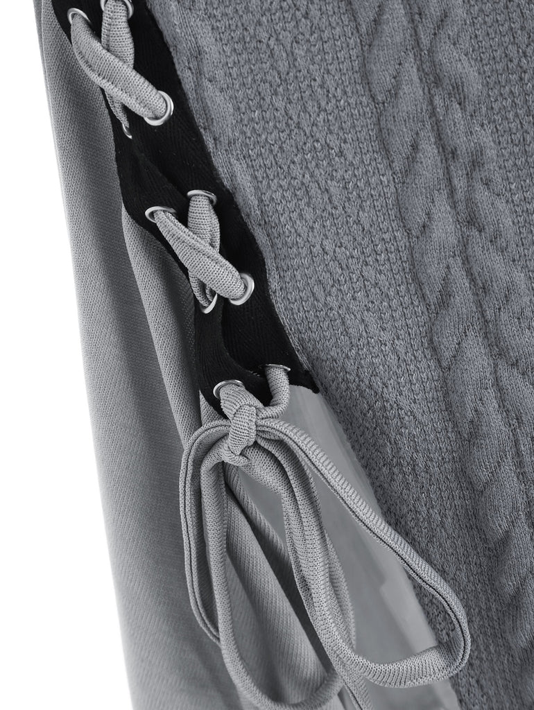 Cowl Neck Lace Up Guipure Panel Longline Knitwear