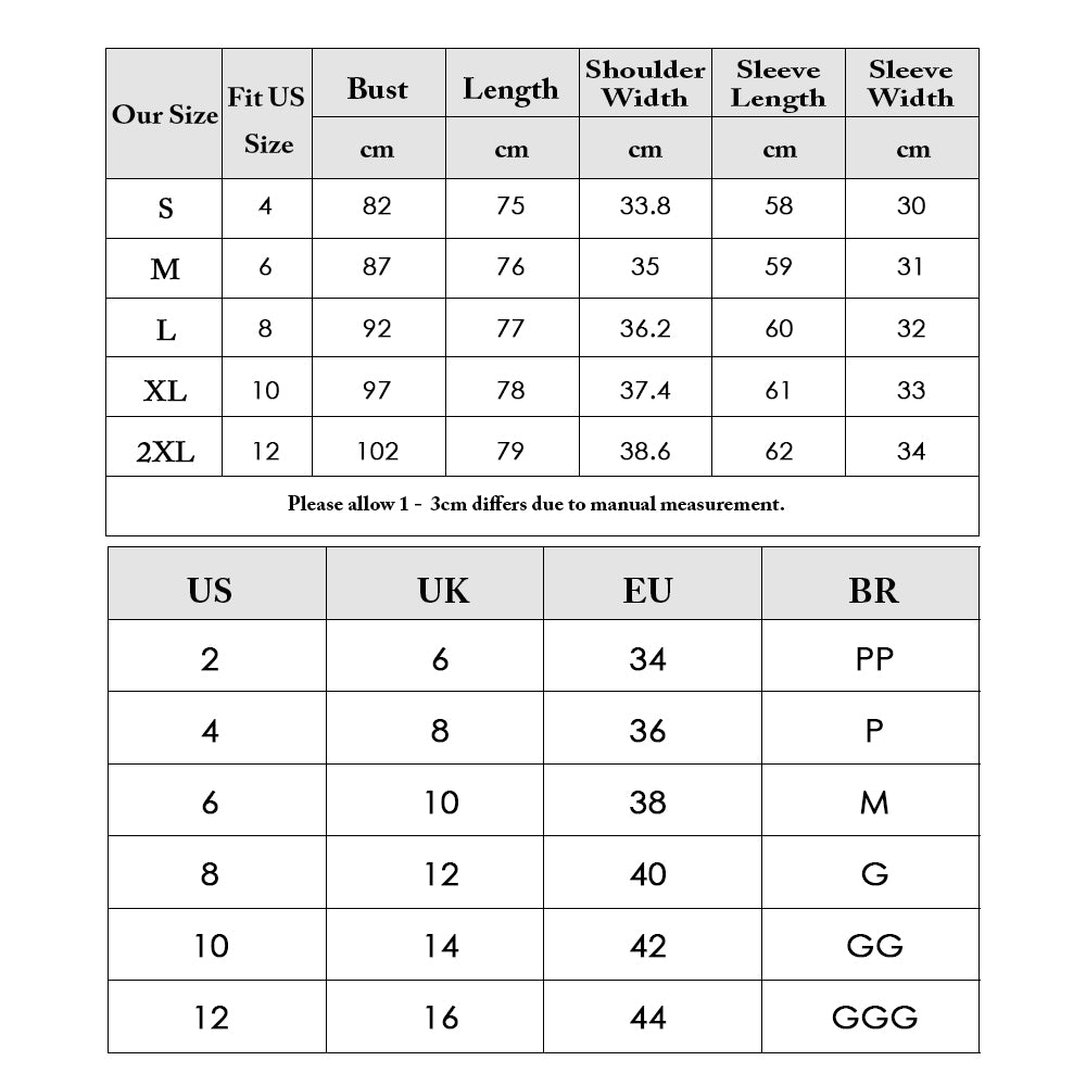 Our Size Bust Length Shoulder Width Sleeve Length Sleeve Width