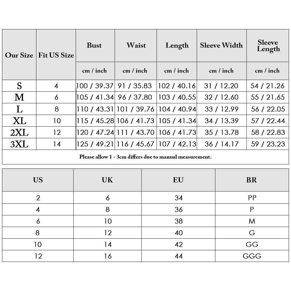 Size Bust Waist Length Sleeve Width Sleeve Length