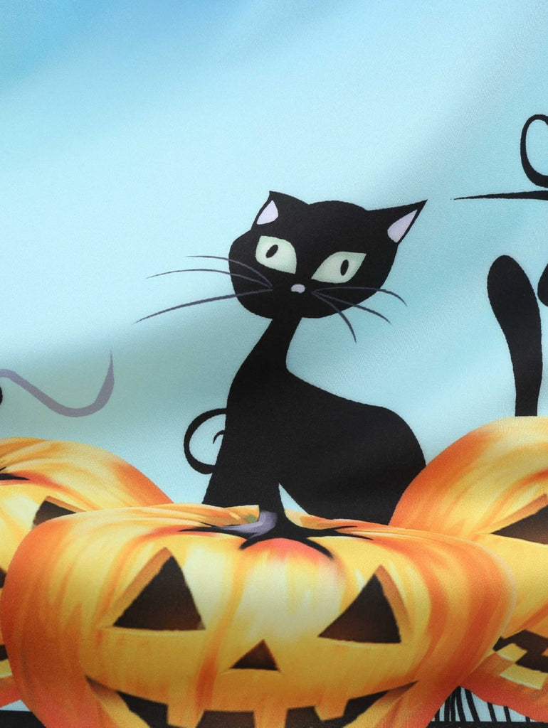Lace Panel Bat Pumpkin Sleeveless Halloween Dress