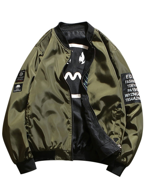 Letter Print Zip Up Baseball Jacket