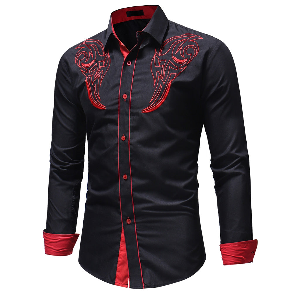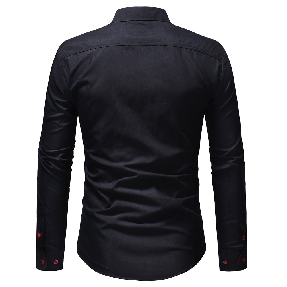 Men's Casual Slim Fit Chest Embroidered Long Sleeve Shirt