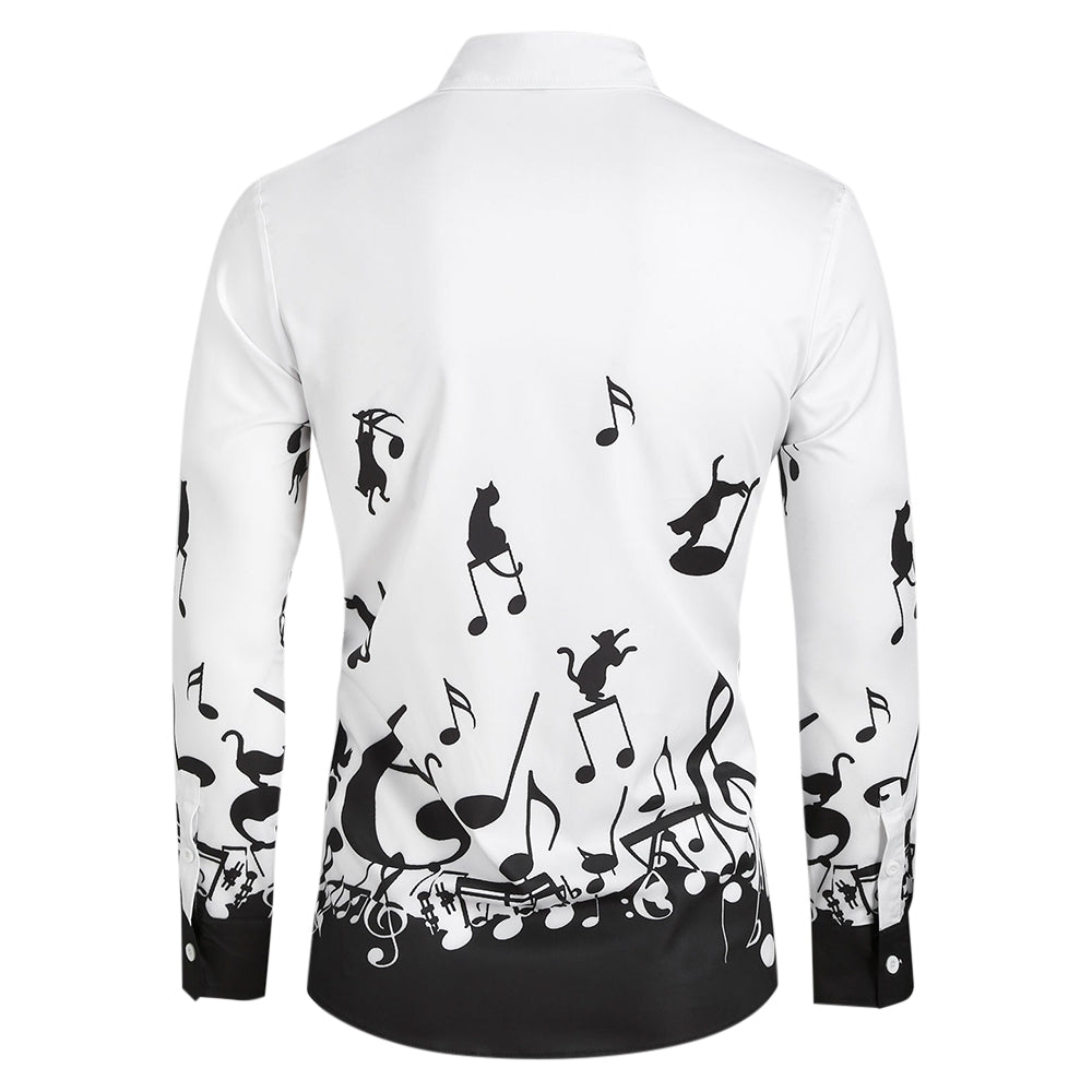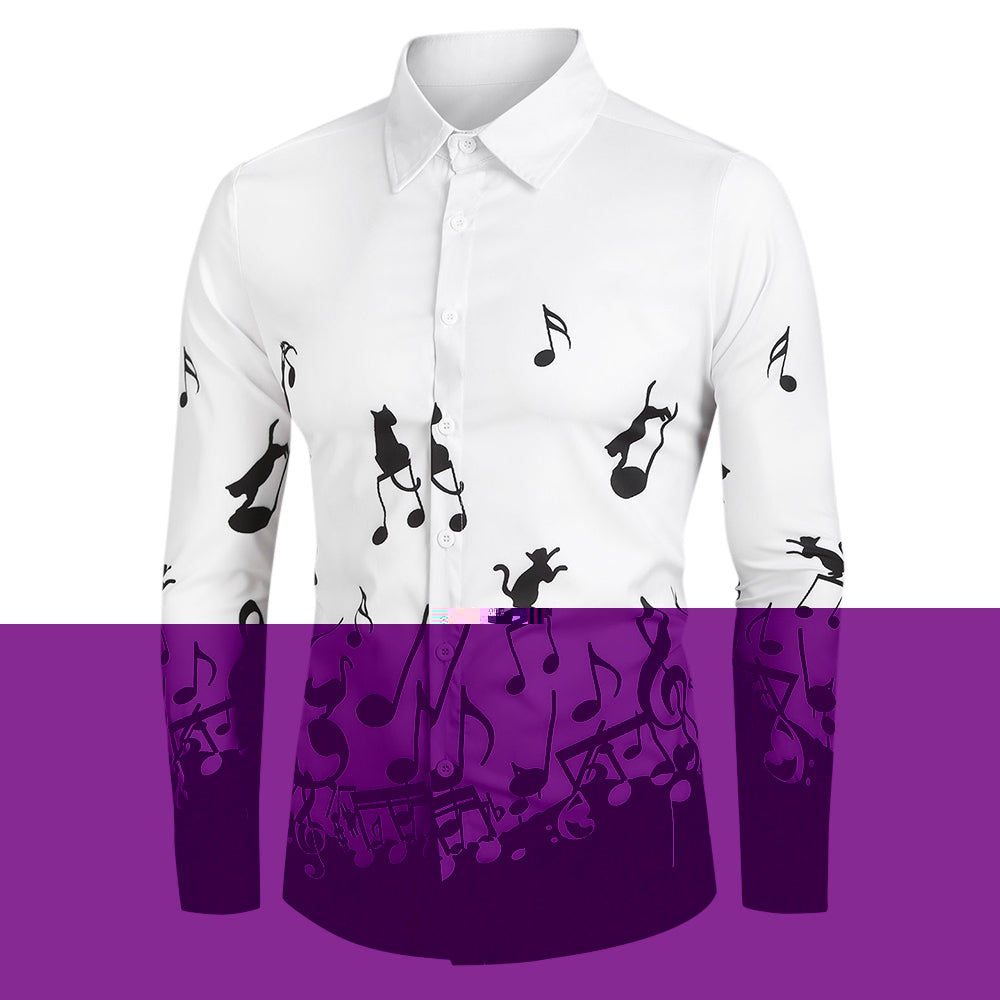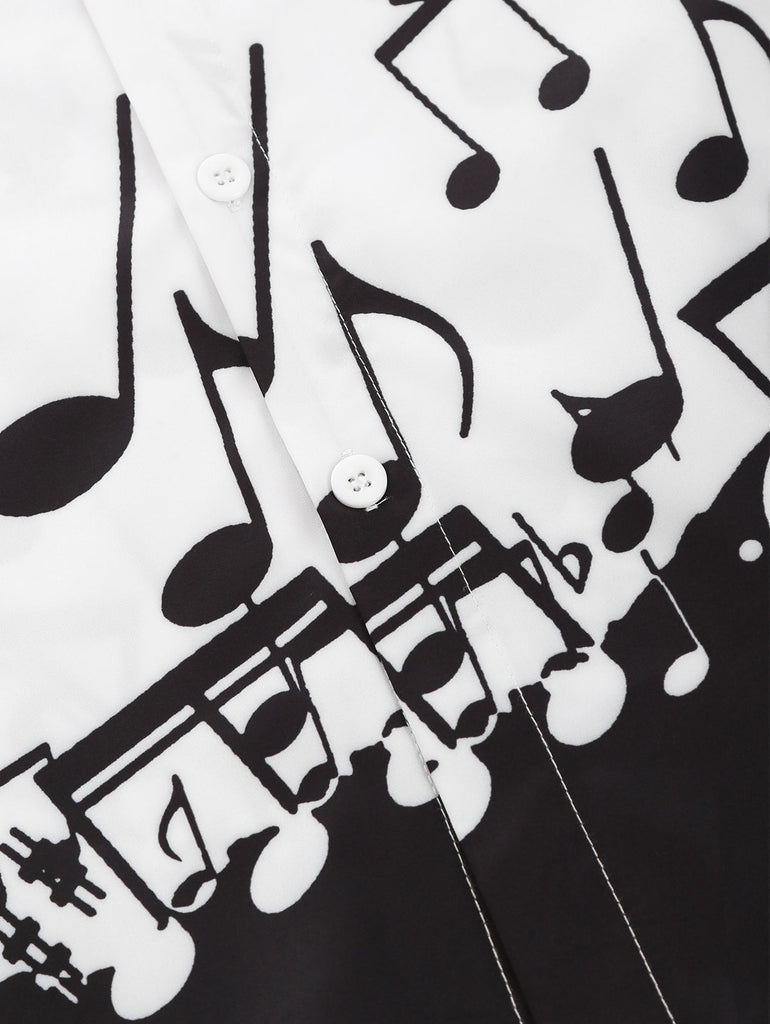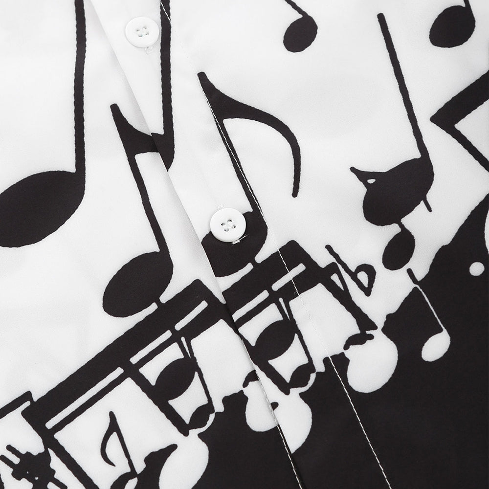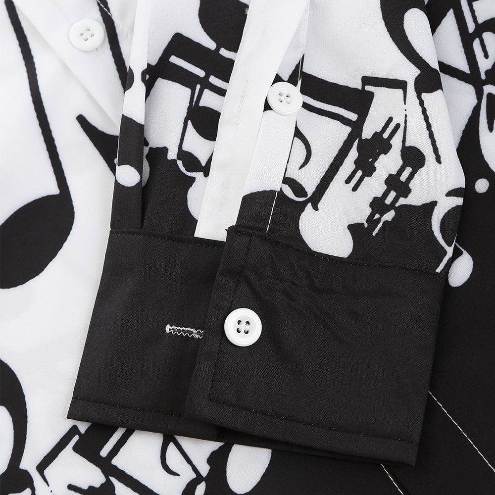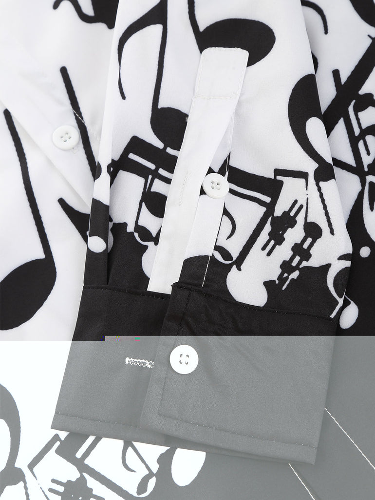 Music Notes and Cat Print Button Up Long Sleeve Festival Shirt
