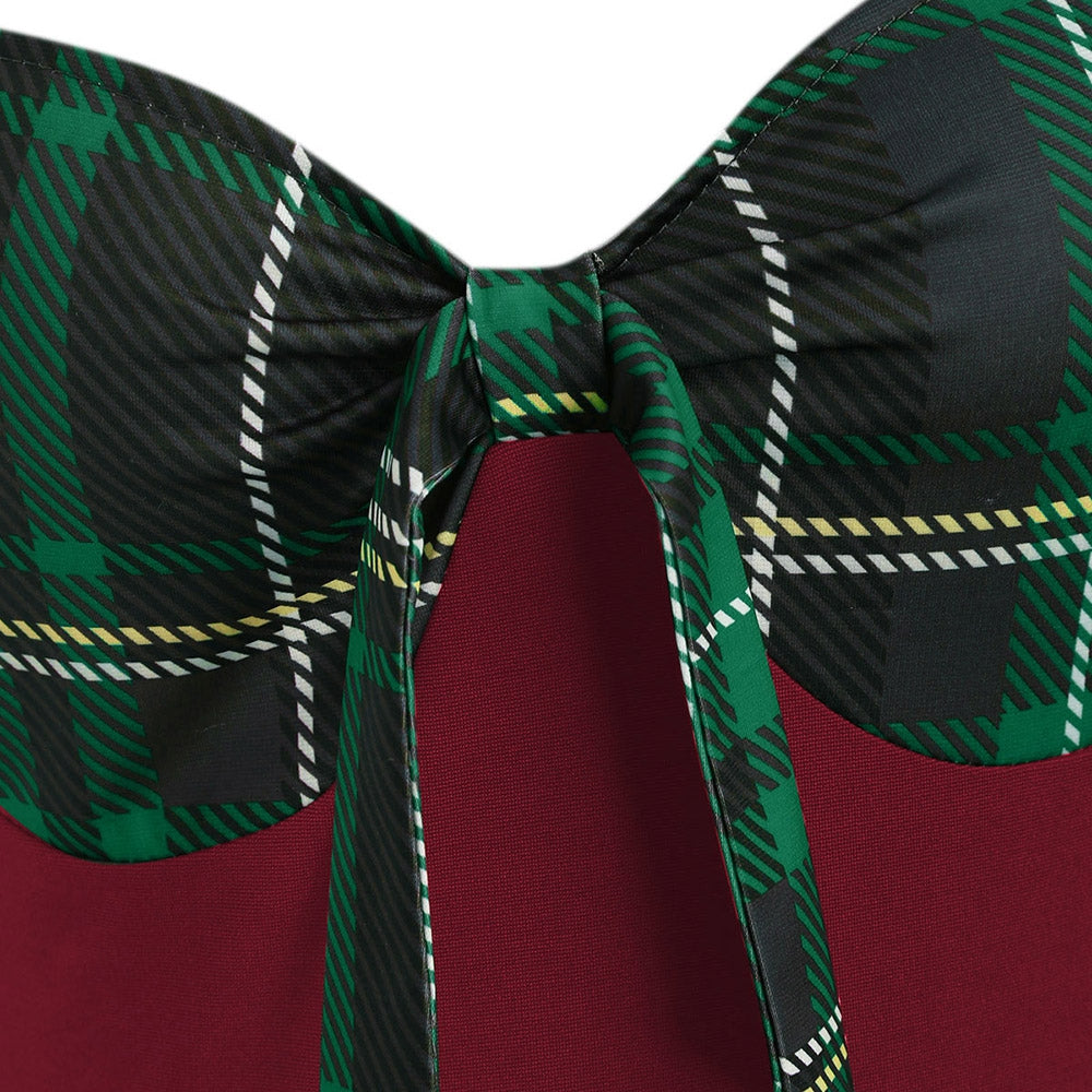 Plaid Button Embellished Bowknot Sweetheart Dress for Women
