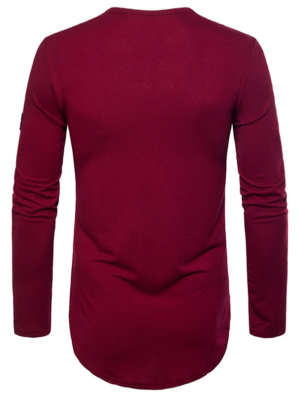 Solid Seam Design Sleeve Applique Hem Curved T-shirt