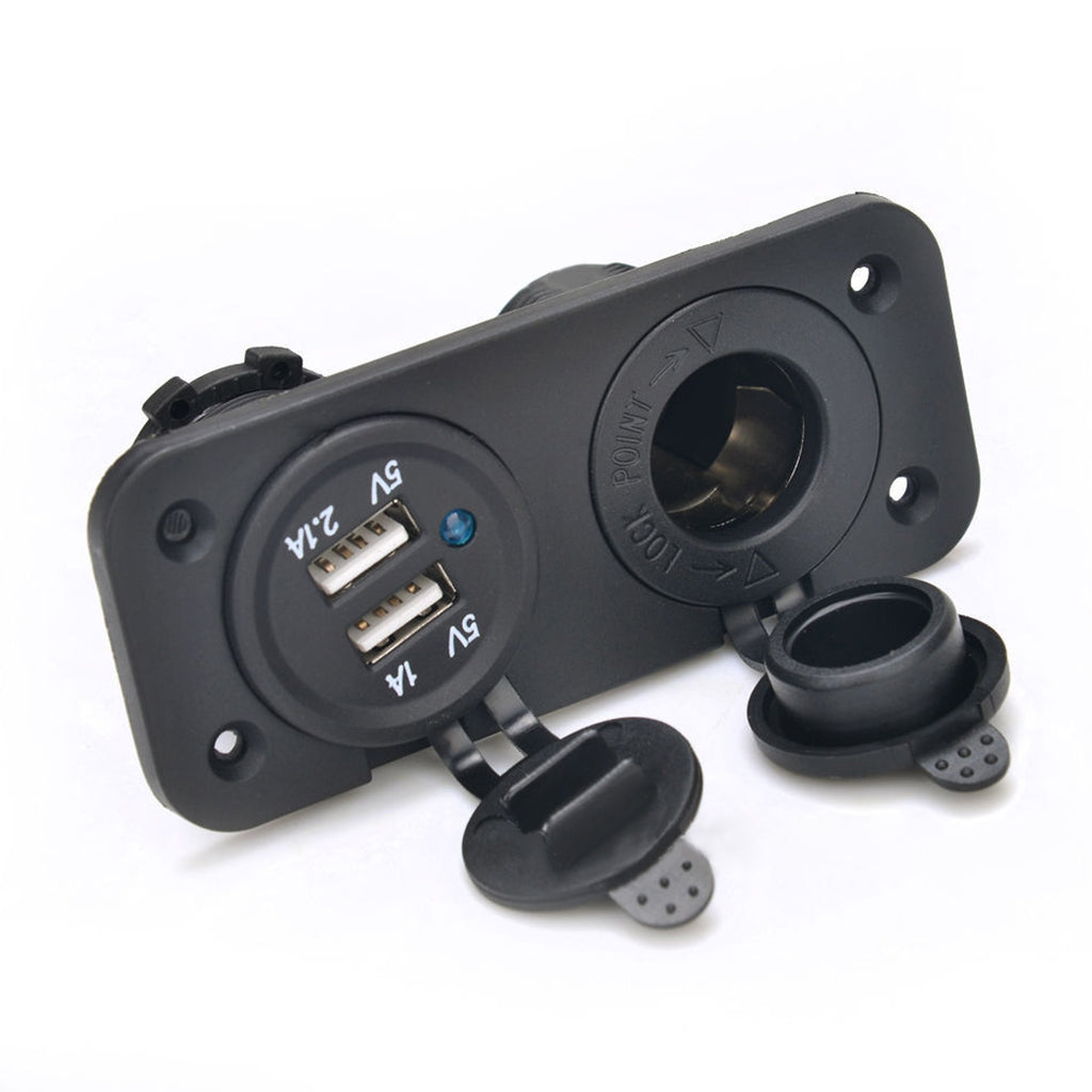 - 100% brand new and high quality DC 12V Car Cigarette Lighter Socket Splitter & Cigarette Case Double USB Power Adapter.