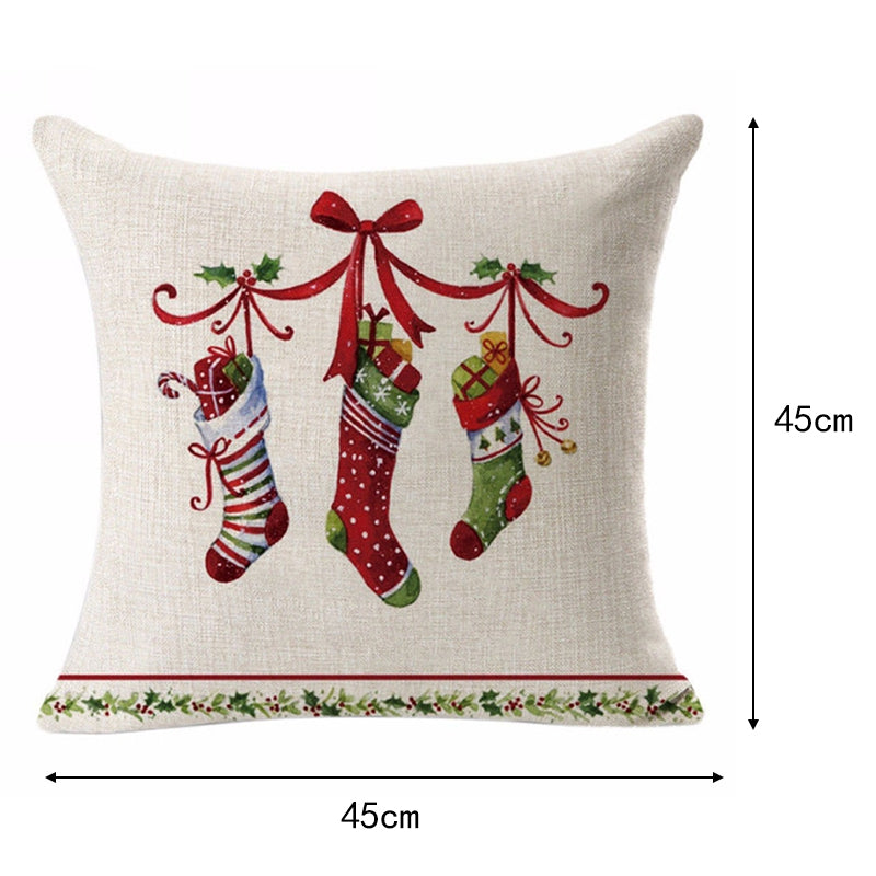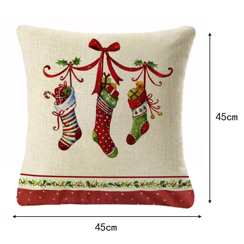 18" Christmas Xmas Linen Cushion Cover Throw Pillow Case Home Decor Festive UK