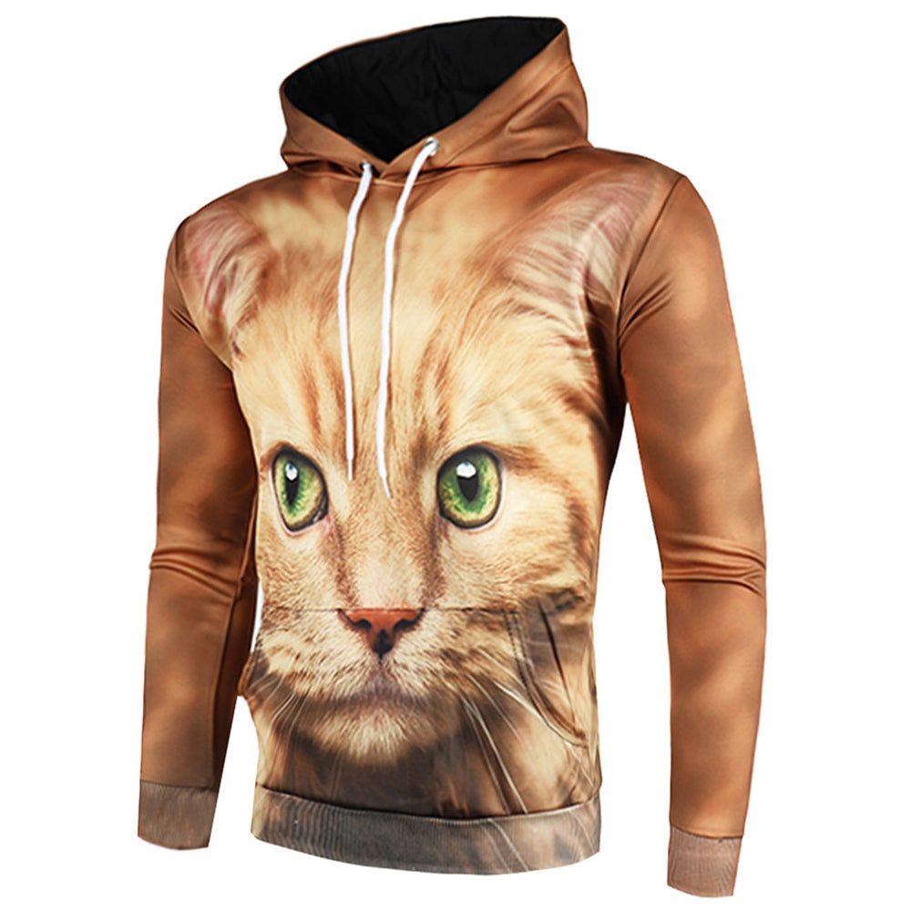 3D Cat Print Pullover Drawstring Hoodie