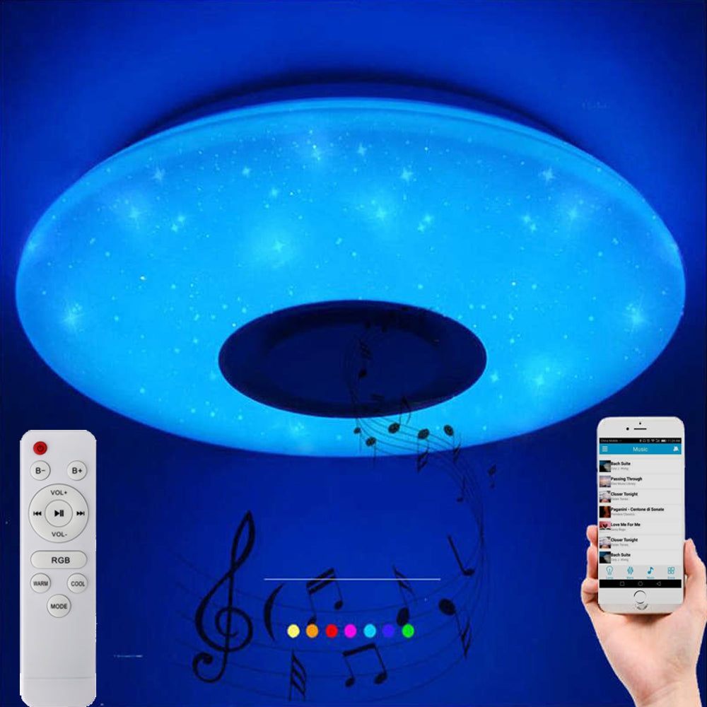 60W RGB LED Ceiling Light bluetooth Music Speaker Lamp Remote APP Control AC220V