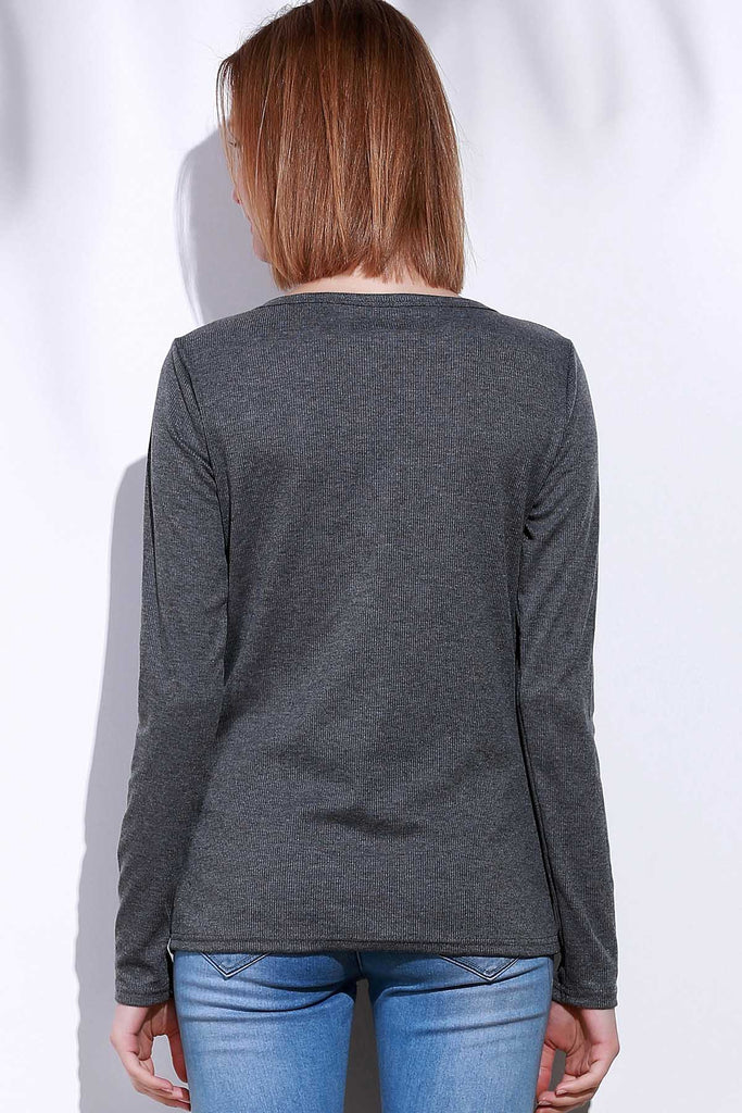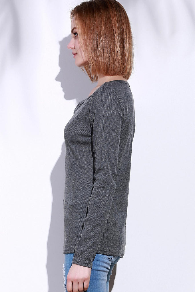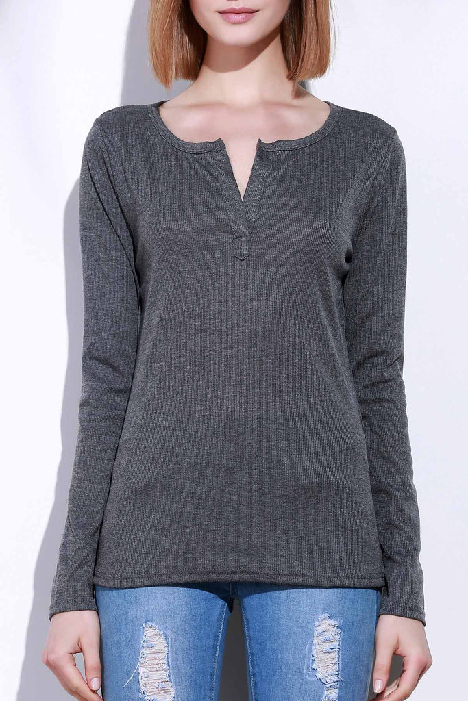 Casual V-Neck Long Sleeve Pure Color T-Shirt For Women