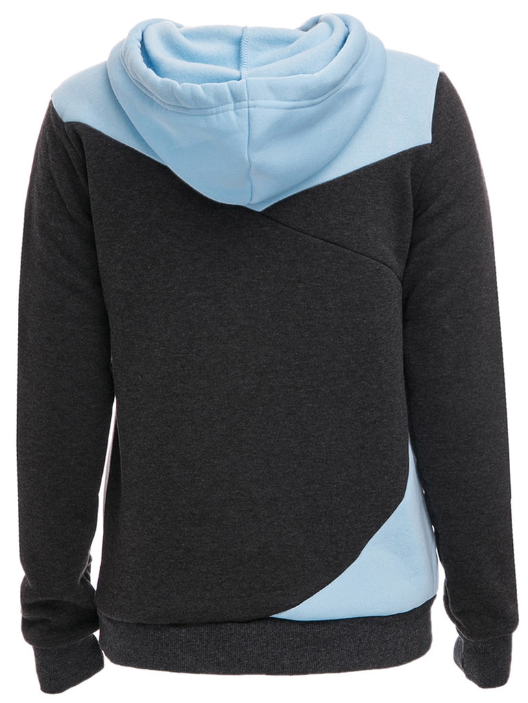 Chic Hooded Long Sleeve Color Block Pocket Design Women's Hoodie