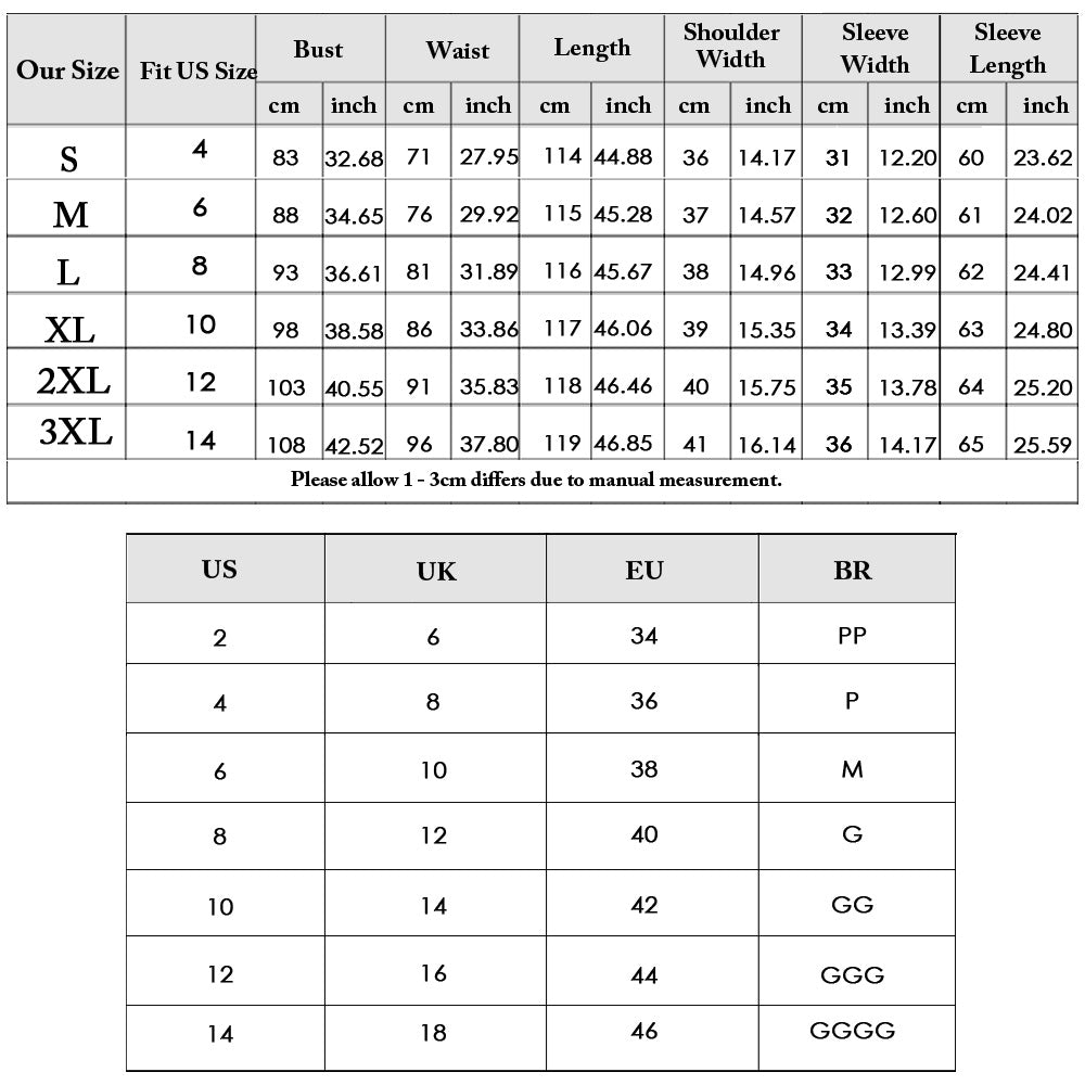 Size Bust Waist Length Shoulder Width Sleeve Width Sleeve Length