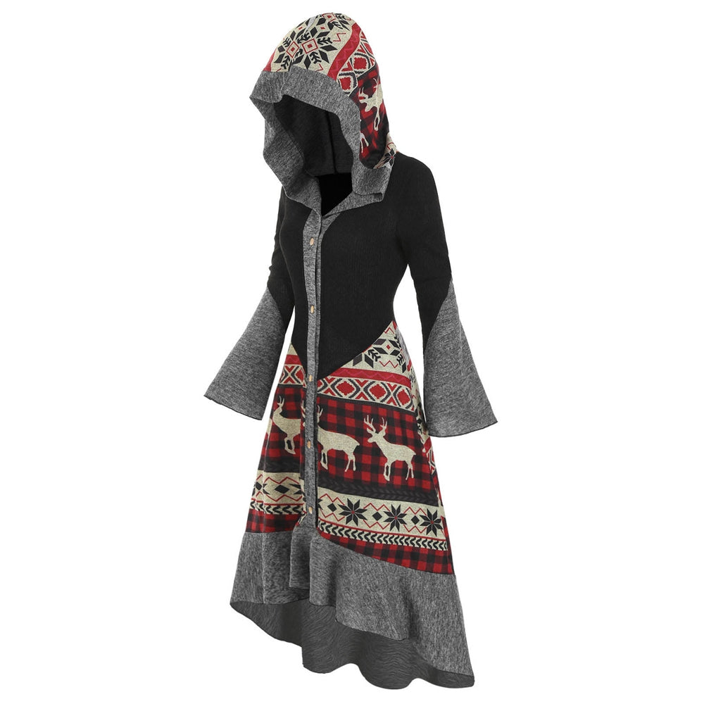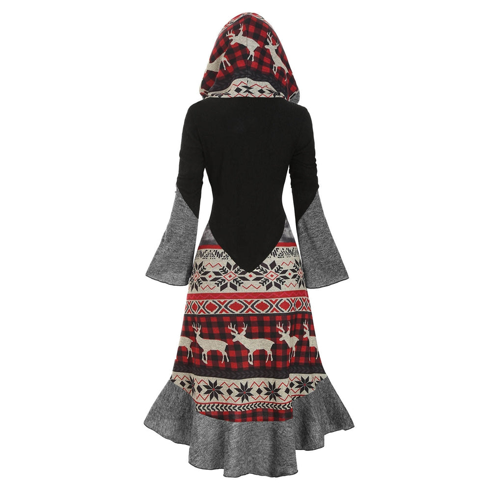 Christmas Elk Hooded Flippy Hem Knitted Dress