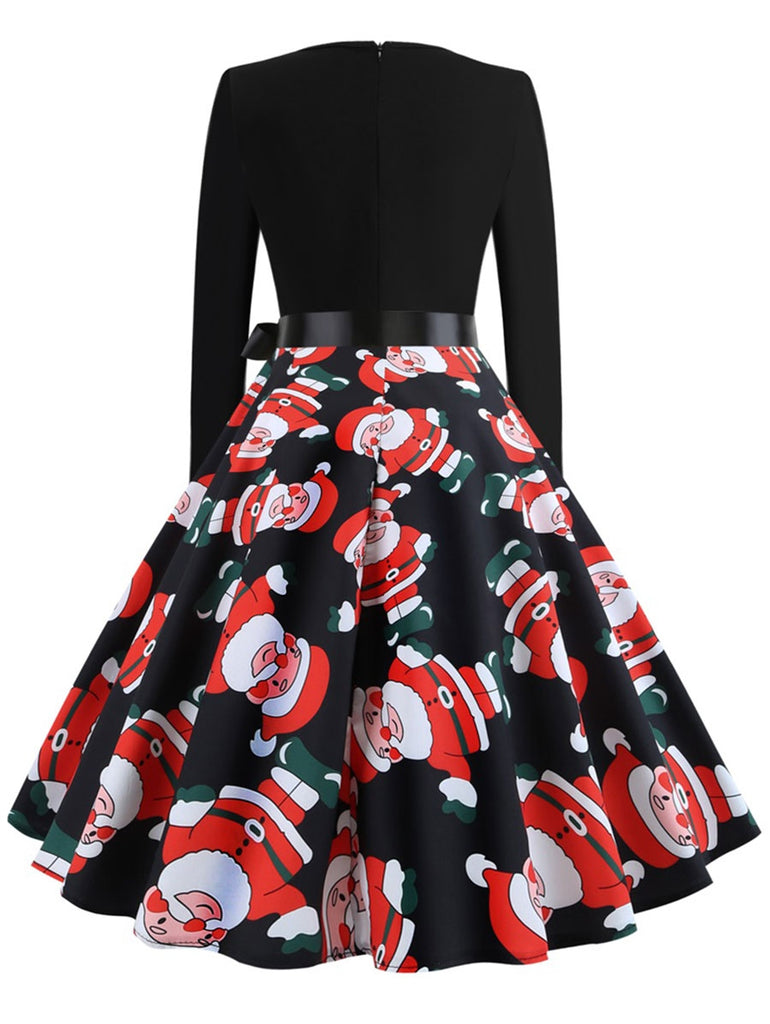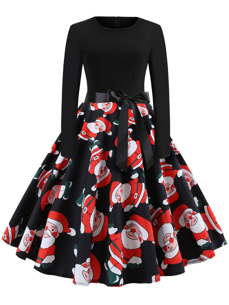 Christmas Print Stitching Long Sleeves and Large Dresses