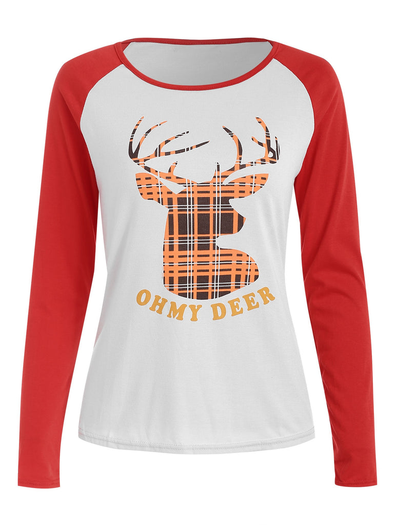 Christmas Slash Neck Long Sleeve Deer Pattern T-Shirt For Women