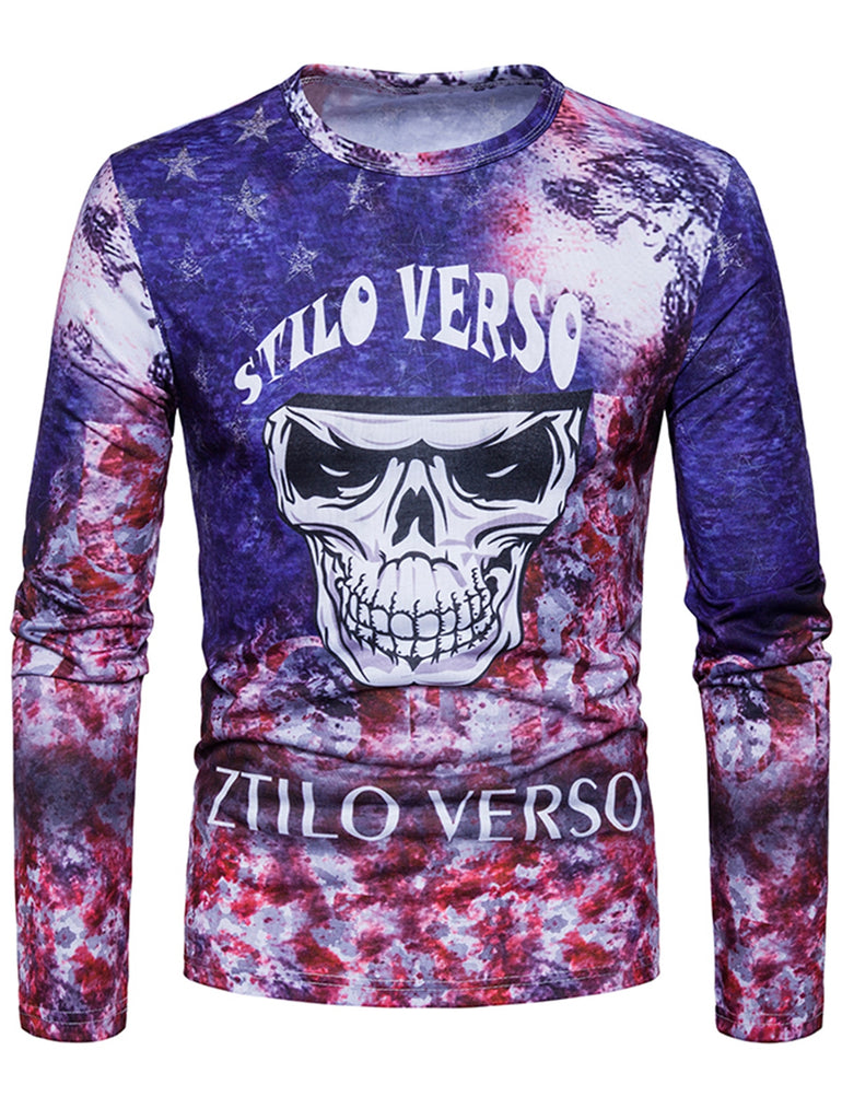 Crew Neck Skull Tie Dye Print Long Sleeve T-shirt