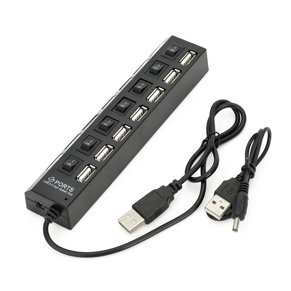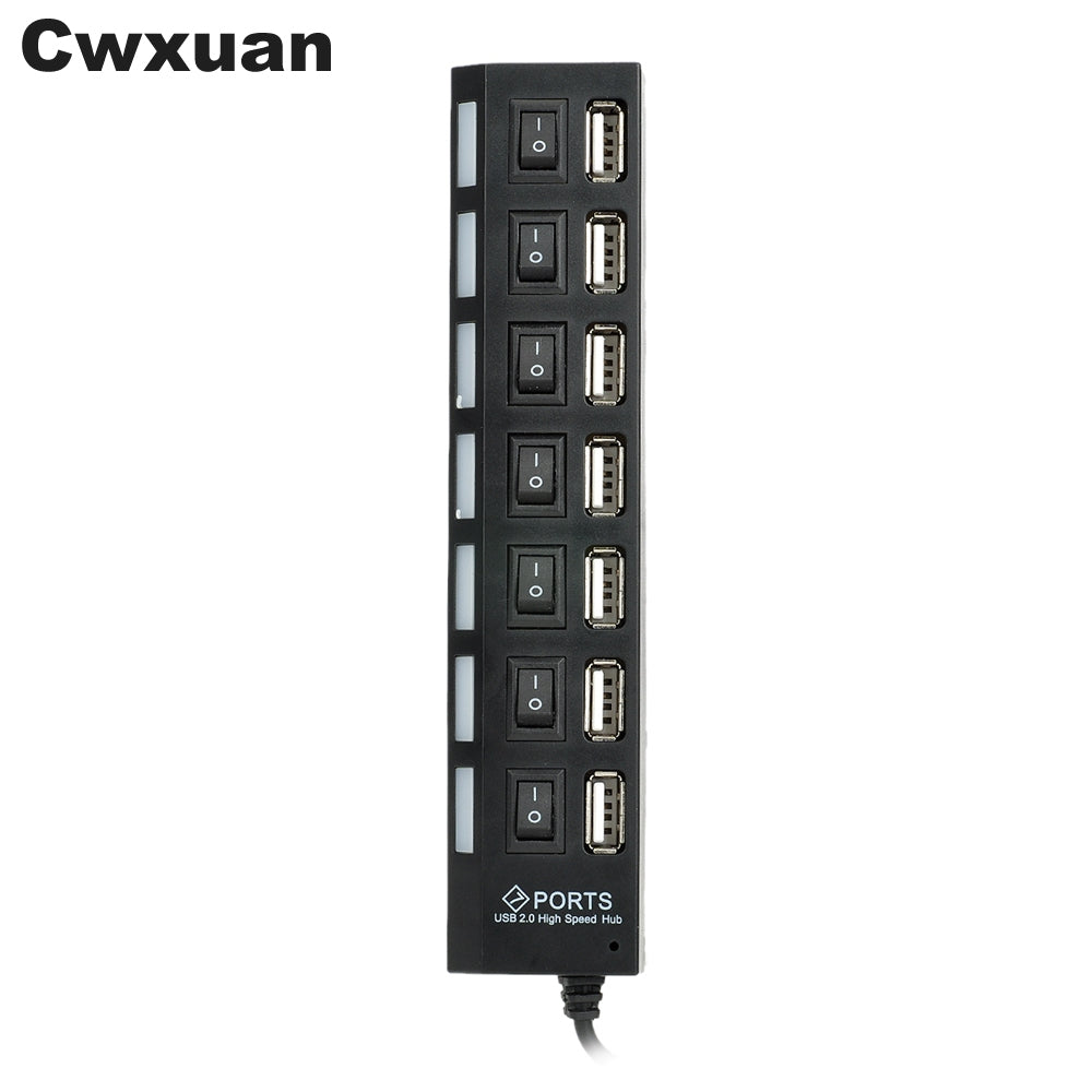 Cwxuan 7-Port USB 2.0 Hub with Individual Switch / Power Cable