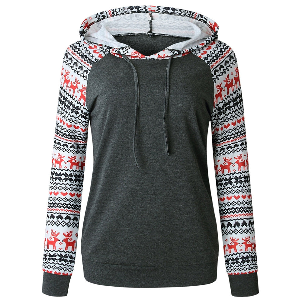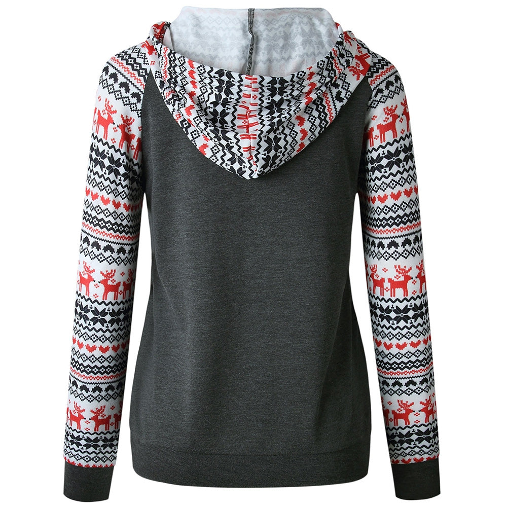 Drawstring Christmas Printed Hoodie