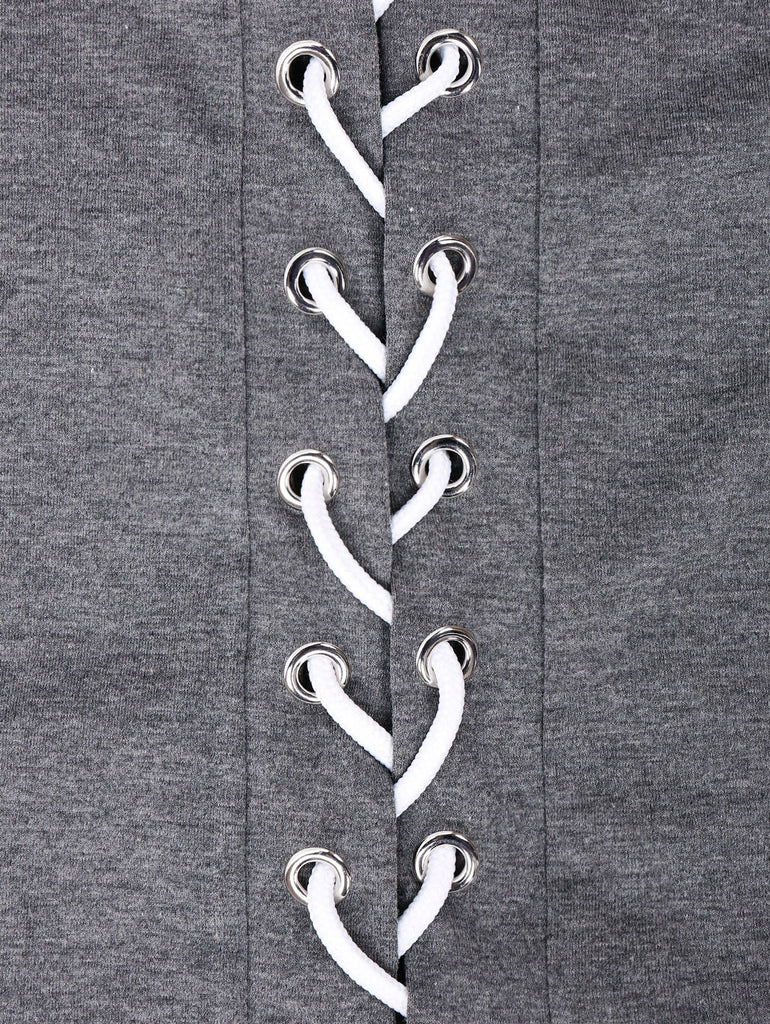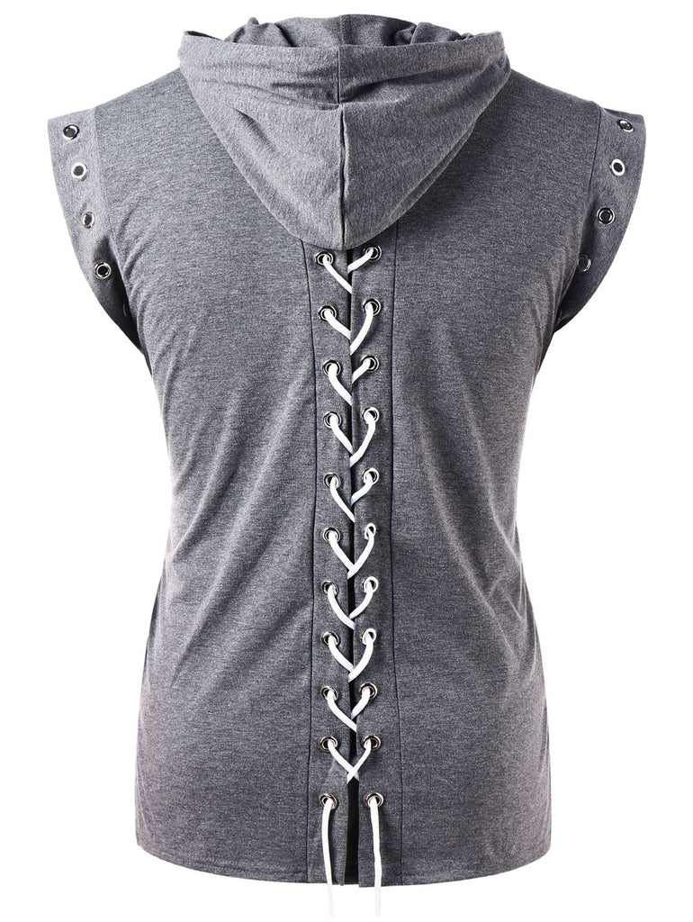 Drawstring Lace Up Solid Color Sleeveless Hoodie
