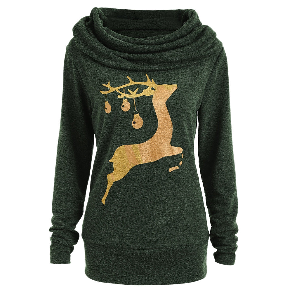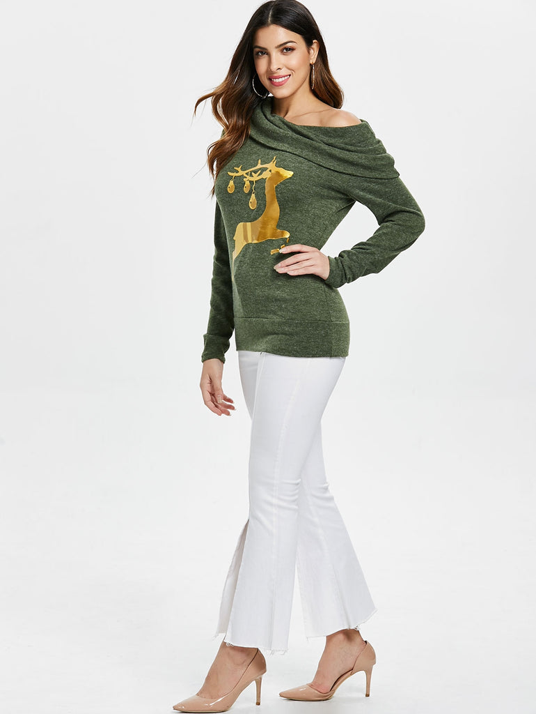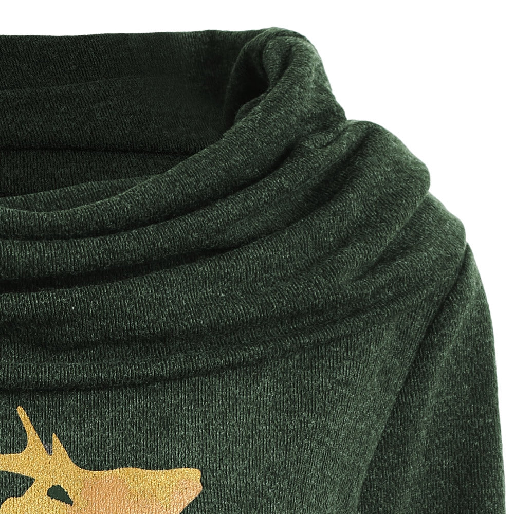 Elk Deer Print Cowl Neck Pullover Sweatshirt