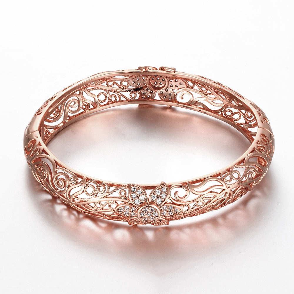 Fashion K Gold Zircon Carving Pattern Female Rose Gold Bracelet