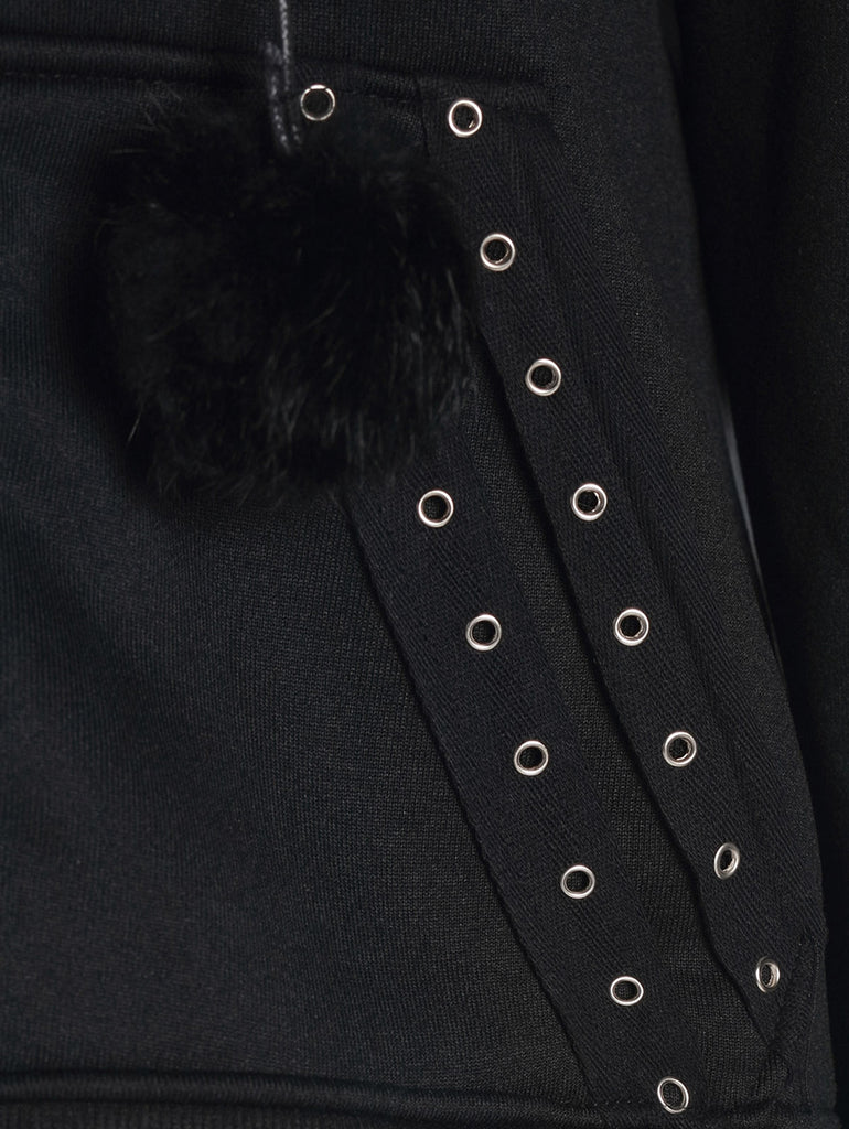 Faux Fur Insert Hooded Pendant Lace-Up Zippered Hoodie