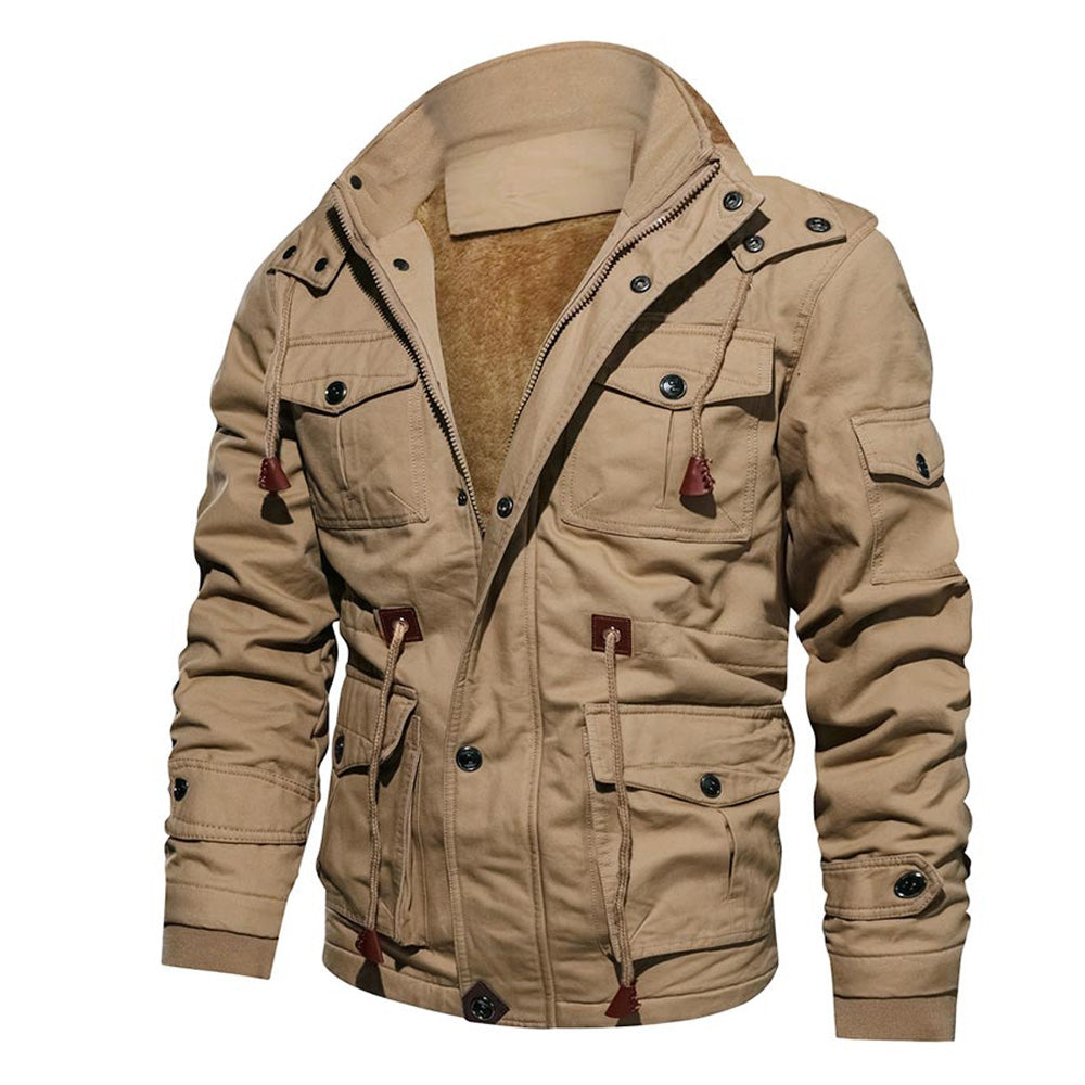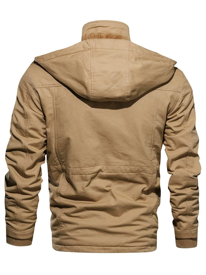Faux Fur Lined Waist Drawstring Cargo Jacket