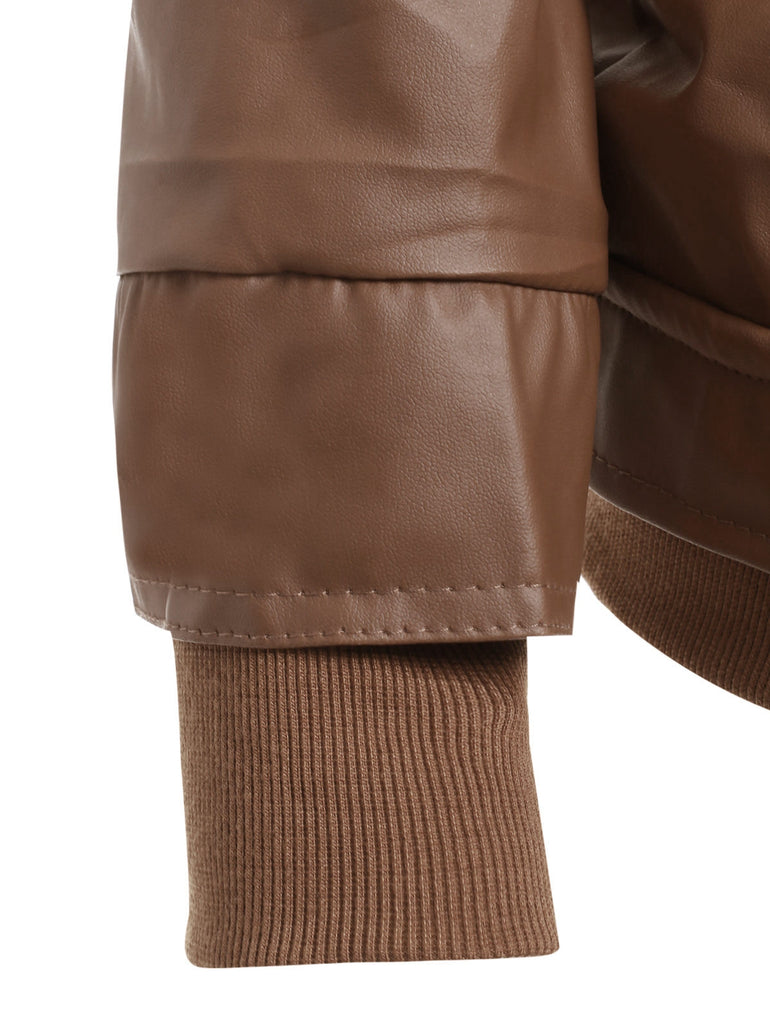 Flap Pockets Hooded Faux Leather Jacket