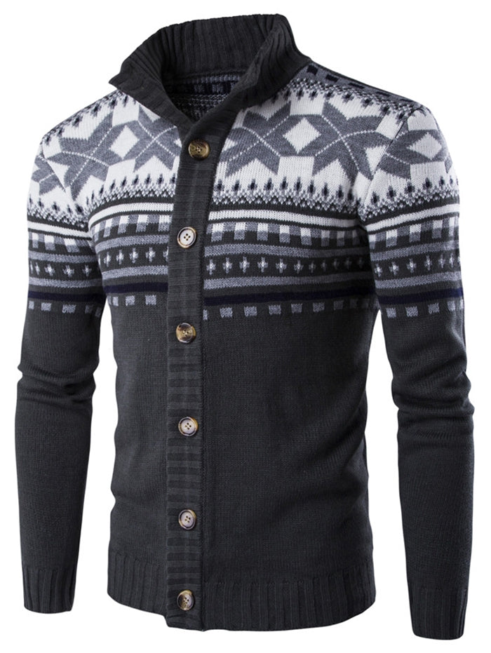 Geometric Snowflake Pattern Christmas Knitted Cardigan