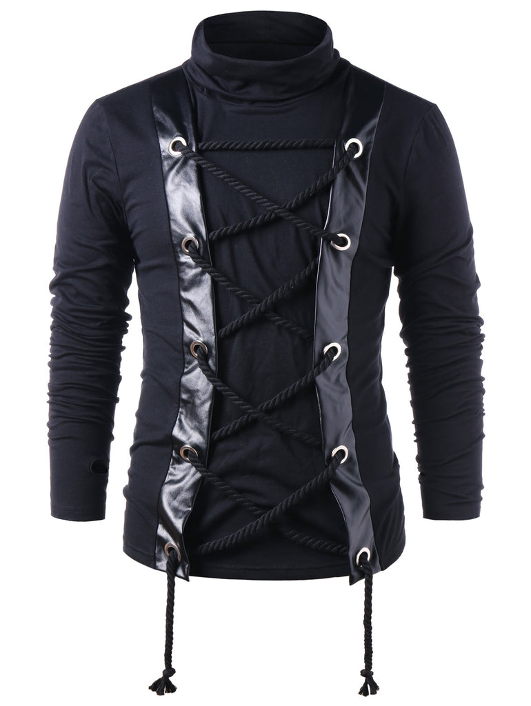 Turtle Neck Lace Up Long Sleeve T-shirt