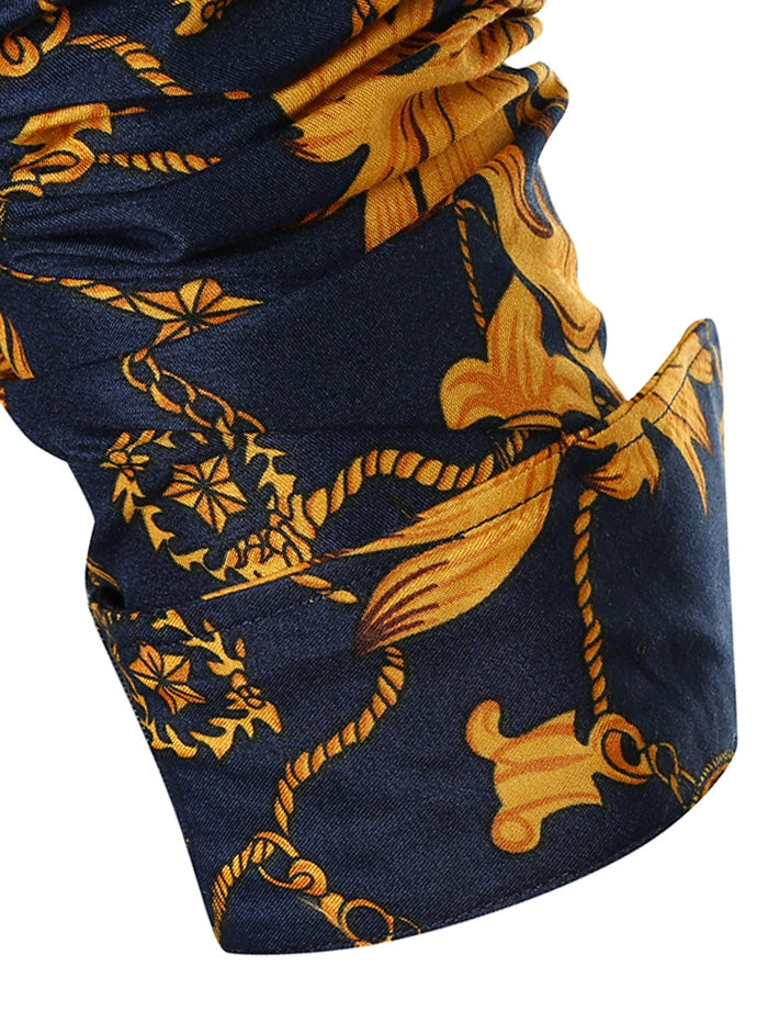 Vintage Flower Chain Print Long Sleeve Shirt