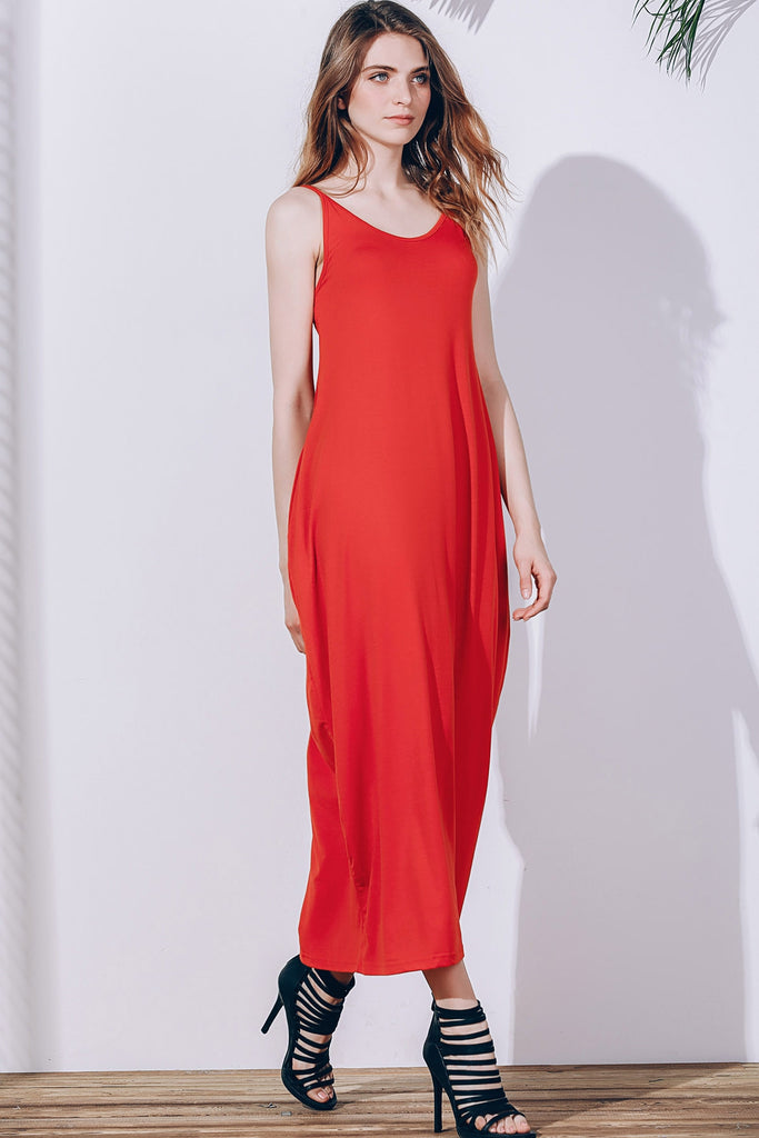 Women Stylish Spaghetti Strap Solid Color Pocket Design Dress