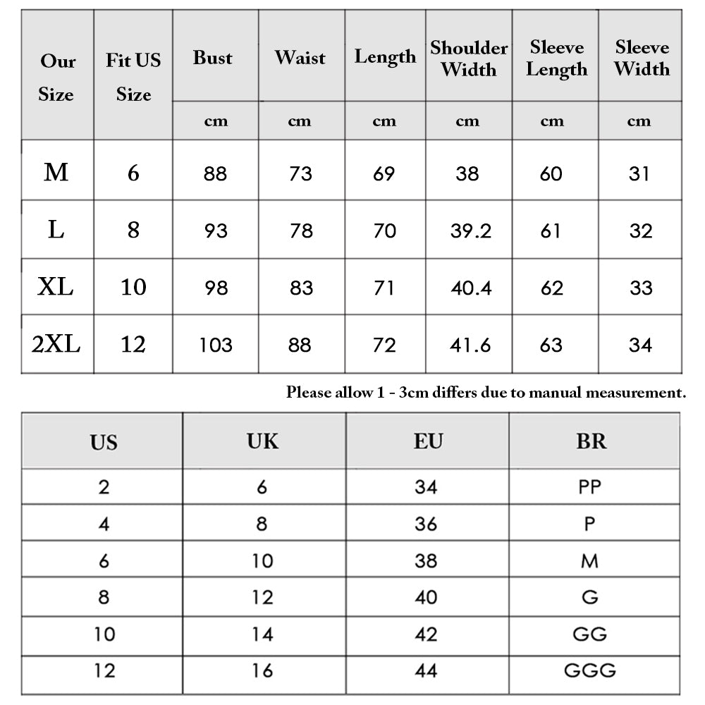 Size Bust Waist Length Shoulder Width Sleeve Length Sleeve Width